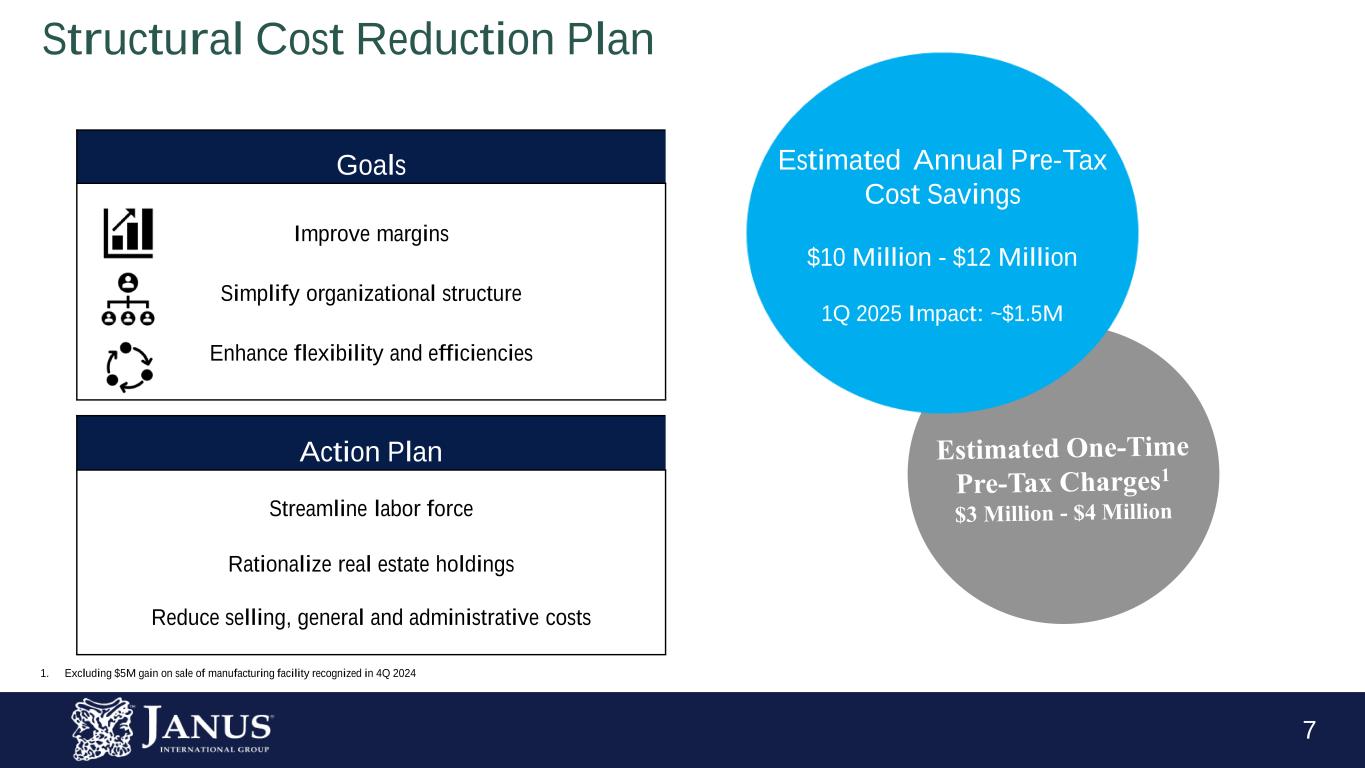 6 First Quarter 2025 Revenue and Adjusted EBITDA1 Drivers 1. Adjusted EBITDA is not a financial measure determined in accordance with GAAP. For a definition of this metric and a reconciliation to our most directly comparable financial measure calculated and presented in accordance with GAAP, please see the Company’s latest filings with the SEC as well as the Appendix of this presentation. Revenue Adjusted EBITDA1