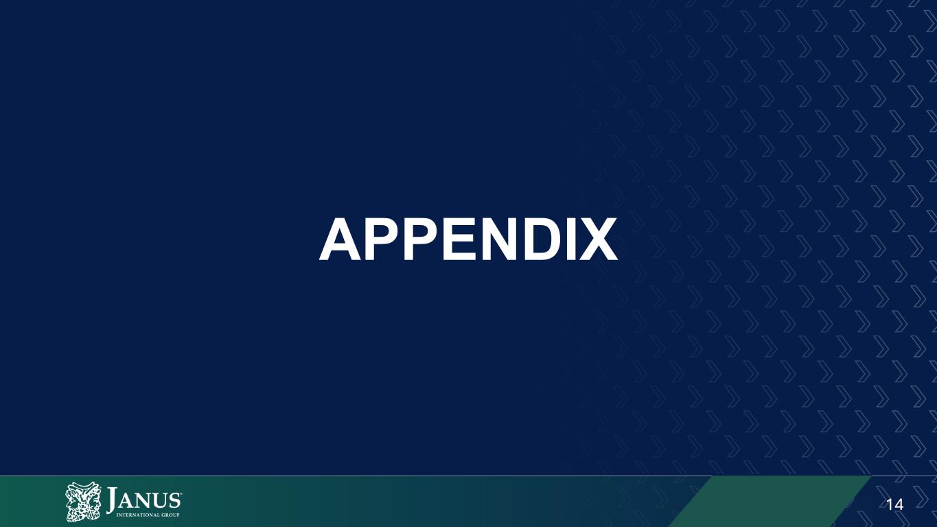 13JanusIntl.com Executing Against the Plan for Significant Value1 2.0x - 3.0x75% - 100% Cash Flow Generation (Long-Term Targets) Organic Revenue Growth (Long-Term Targets) • Strong organic growth trajectory • Leveraging end-market growth dynamics • Structural demand for self storage space not dependent on economic cycles • High occupancy rates drive new construction demand • Aging facilities and industry consolidation catalyze renovation (R3) activity • M&A investment provides additional upside to growth targets • Realizing benefits of structural resilience • Commercial actions • Flexible customer contract structuring to capture input cost cyclicality • Operating leverage on higher volume • Operational improvements and technology investments • Continued growth in Nokē contribution to results • Maintain strong conversion of Adjusted Net Income to Free Cash Flow • Tight working capital management • Low levels of maintenance capex • Significant balance sheet capacity enhances strategic flexibility • Maintain ratio within target range of 2.0x – 3.0x • Remain flexible for acquisitions, growth initiatives and value-enhancing investments Margin Expansion (Long-Term Targets) Annual Organic Revenue Growth Adjusted EBITDA2 Margin Free Cash Flow2 Conversion Net Leverage2 4% - 6% 25% - 27% 1. Figures in this slide represent the Company’s targets and no guarantee can be provided that these figures or other potential results discussed in this Slide will be achieved. See “Forward-Looking Statements.” 2. Adjusted EBITDA, Free Cash Flow Conversion of Adjusted Net Income and Net Leverage are not financial measures determined in accordance with GAAP. For a definition of this metric and a reconciliation to our most directly comparable financial measure calculated and presented in accordance with GAAP, please see the company’s latest filings with the SEC.